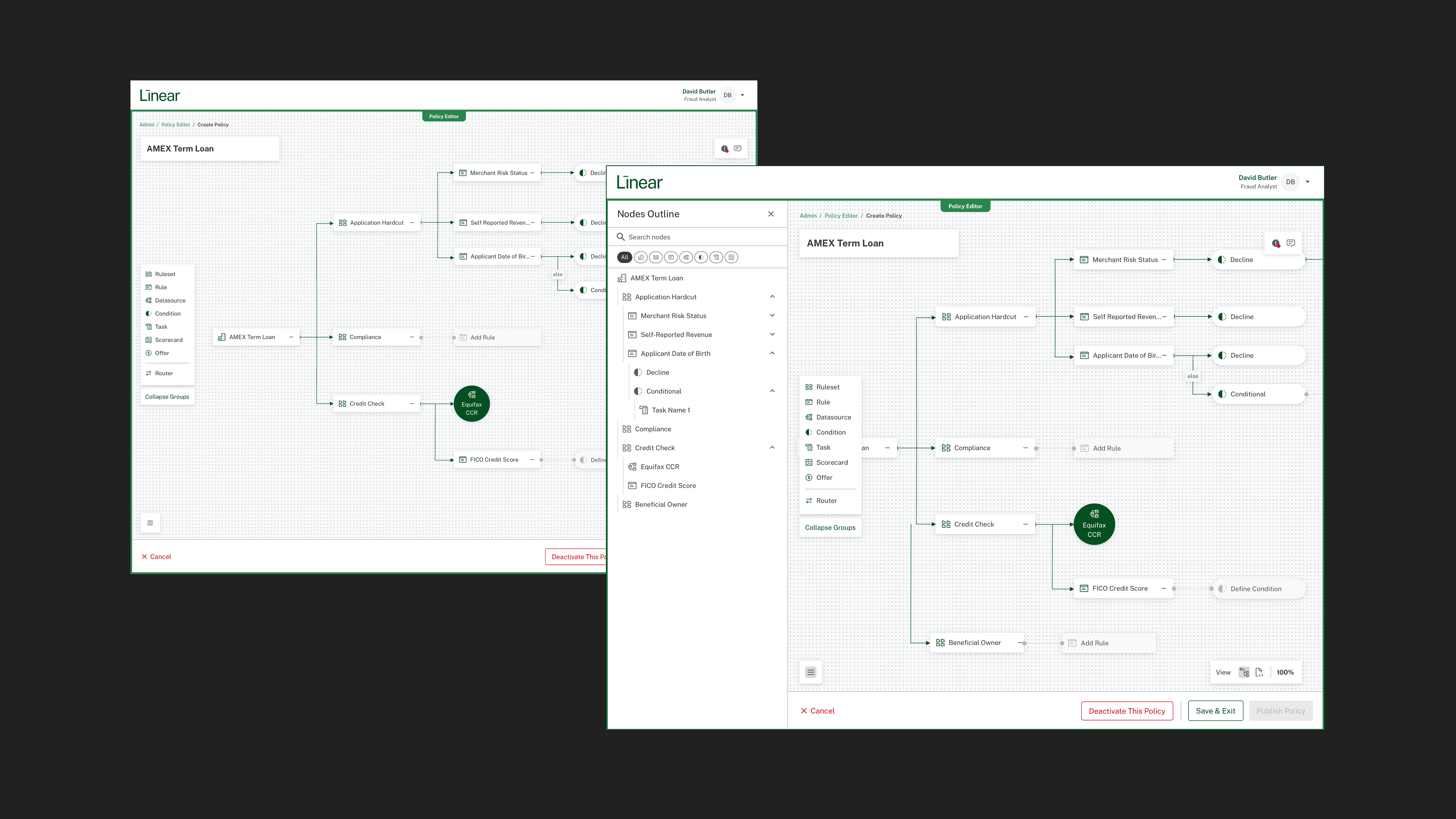 Spearheaded an internal workflow tool that allowed bank risk managers to visually create dynamic lending policies