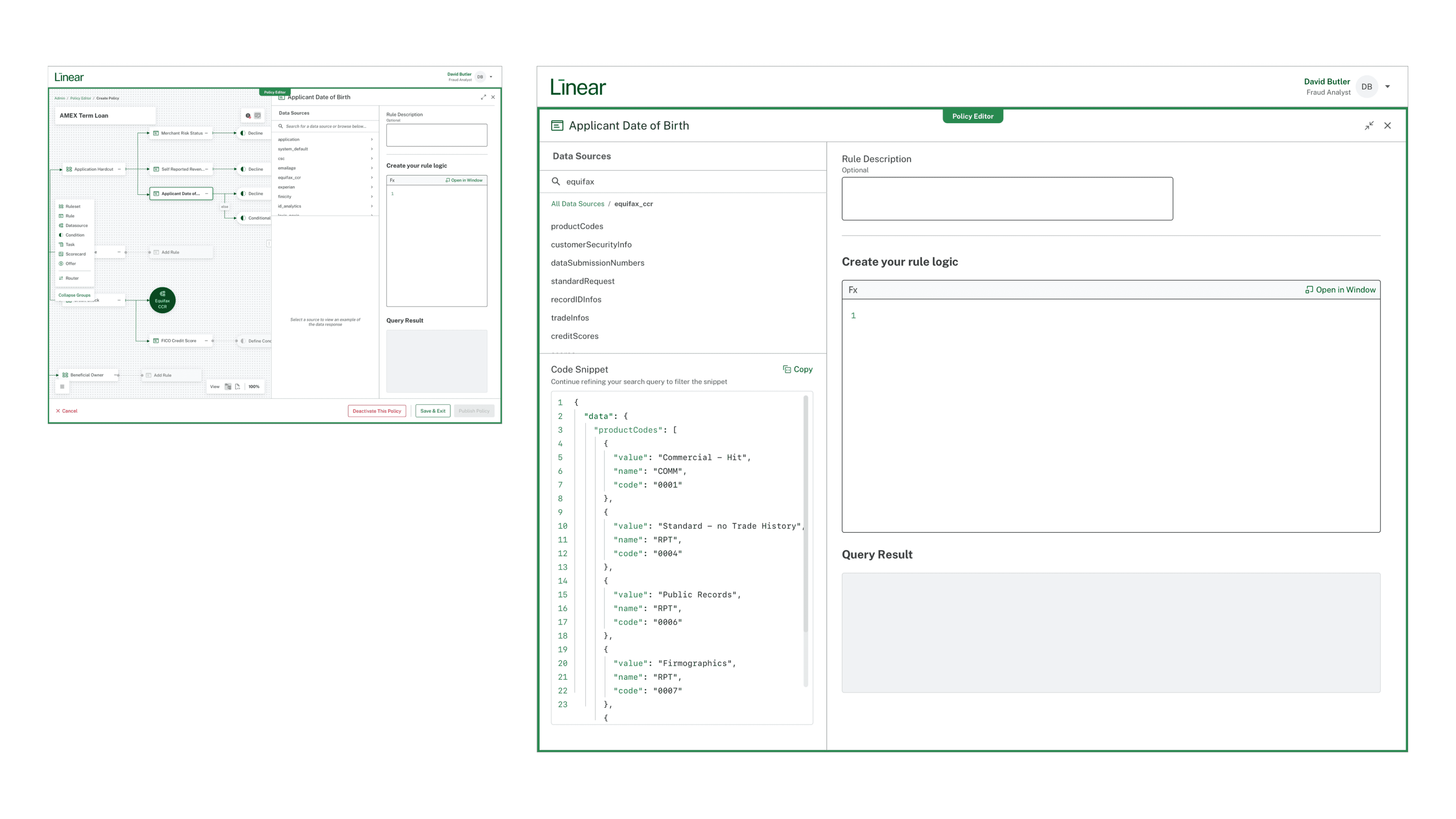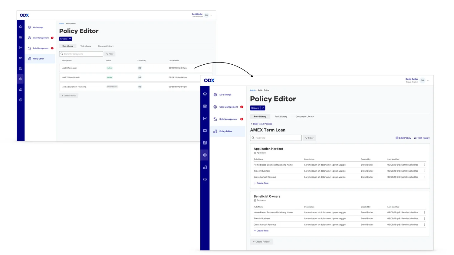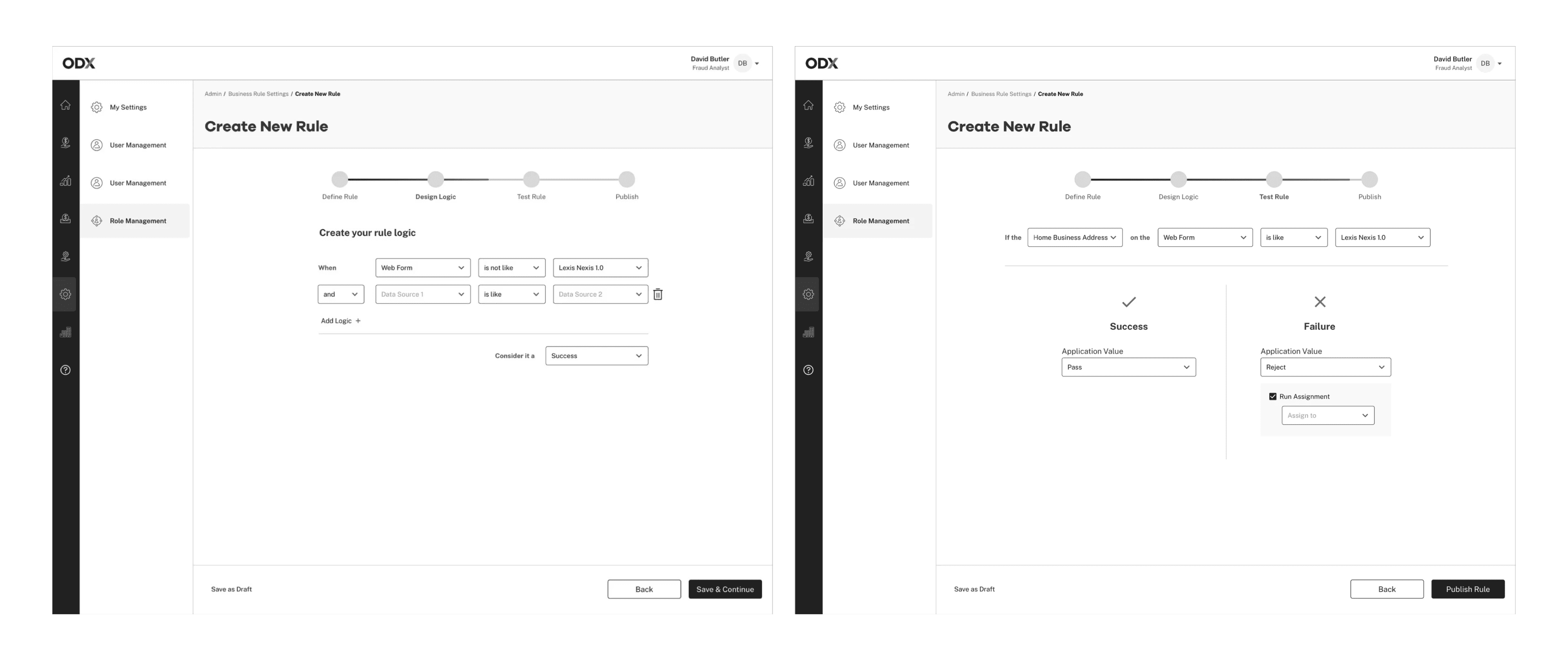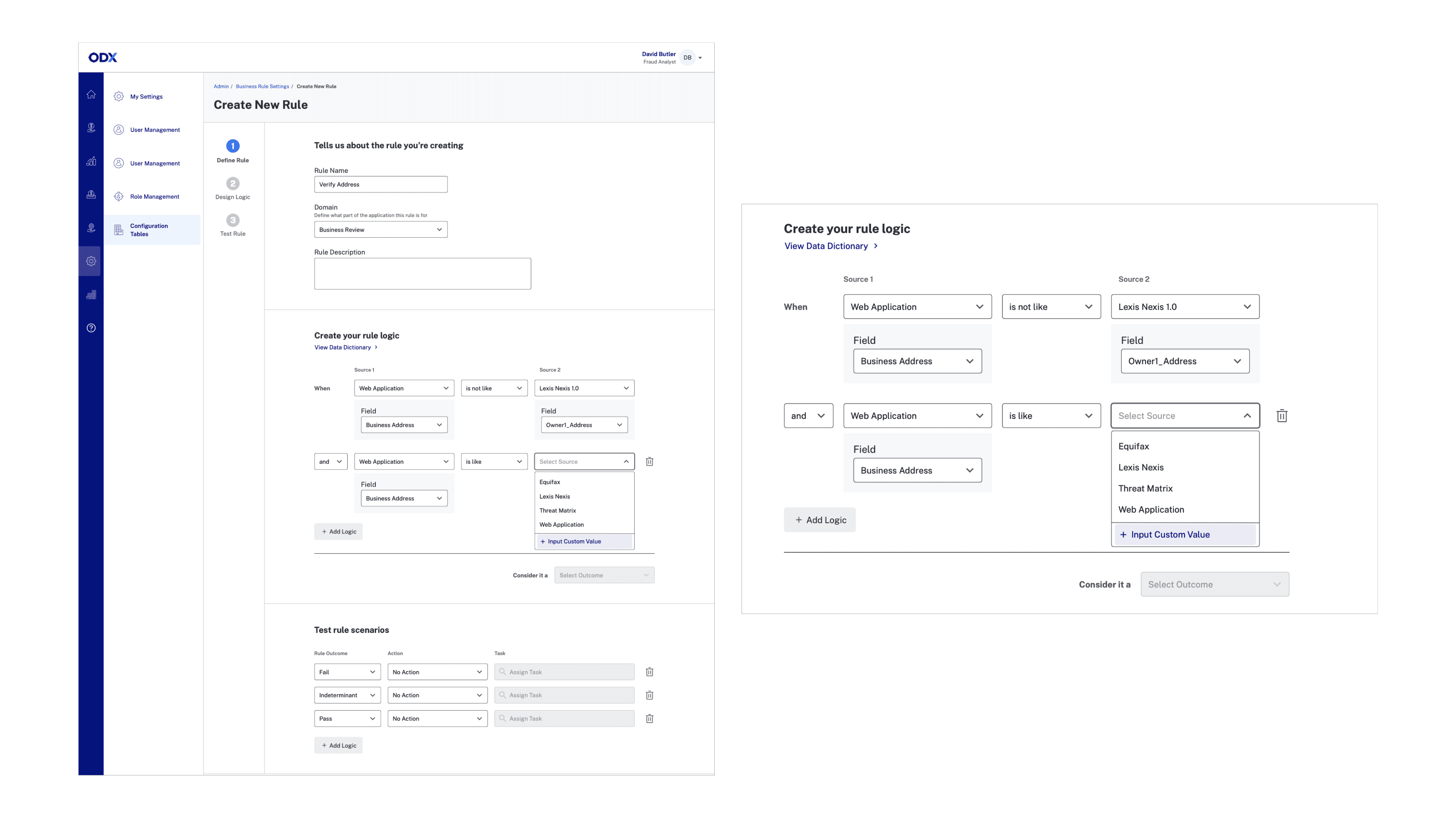 This logic was visualized directly in the analyst’s workspace. Before this feature existed, every rule had to be hard-coded by ODX engineers—making customization slow, expensive, and difficult to scale.