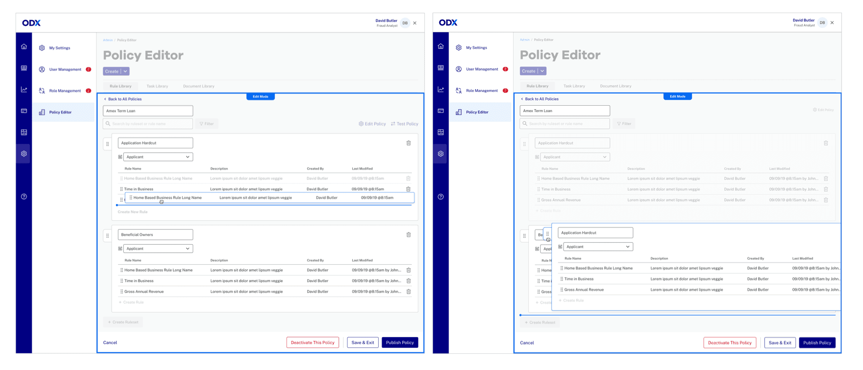 Editing policies carried significant downstream impact, so we introduced a dedicated Edit Mode with strong validation—ensuring changes were intentional and reducing accidental errors.