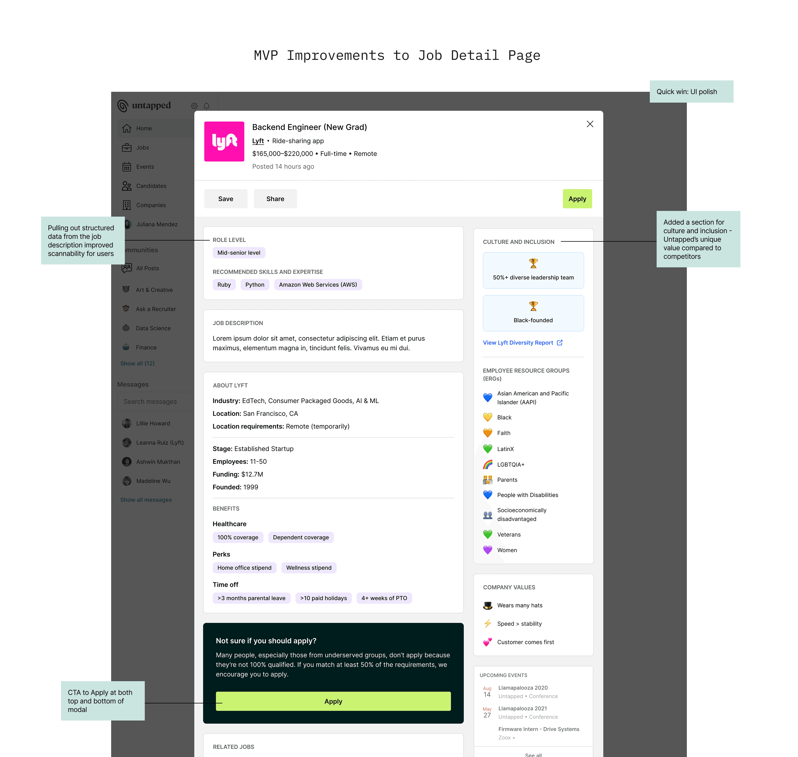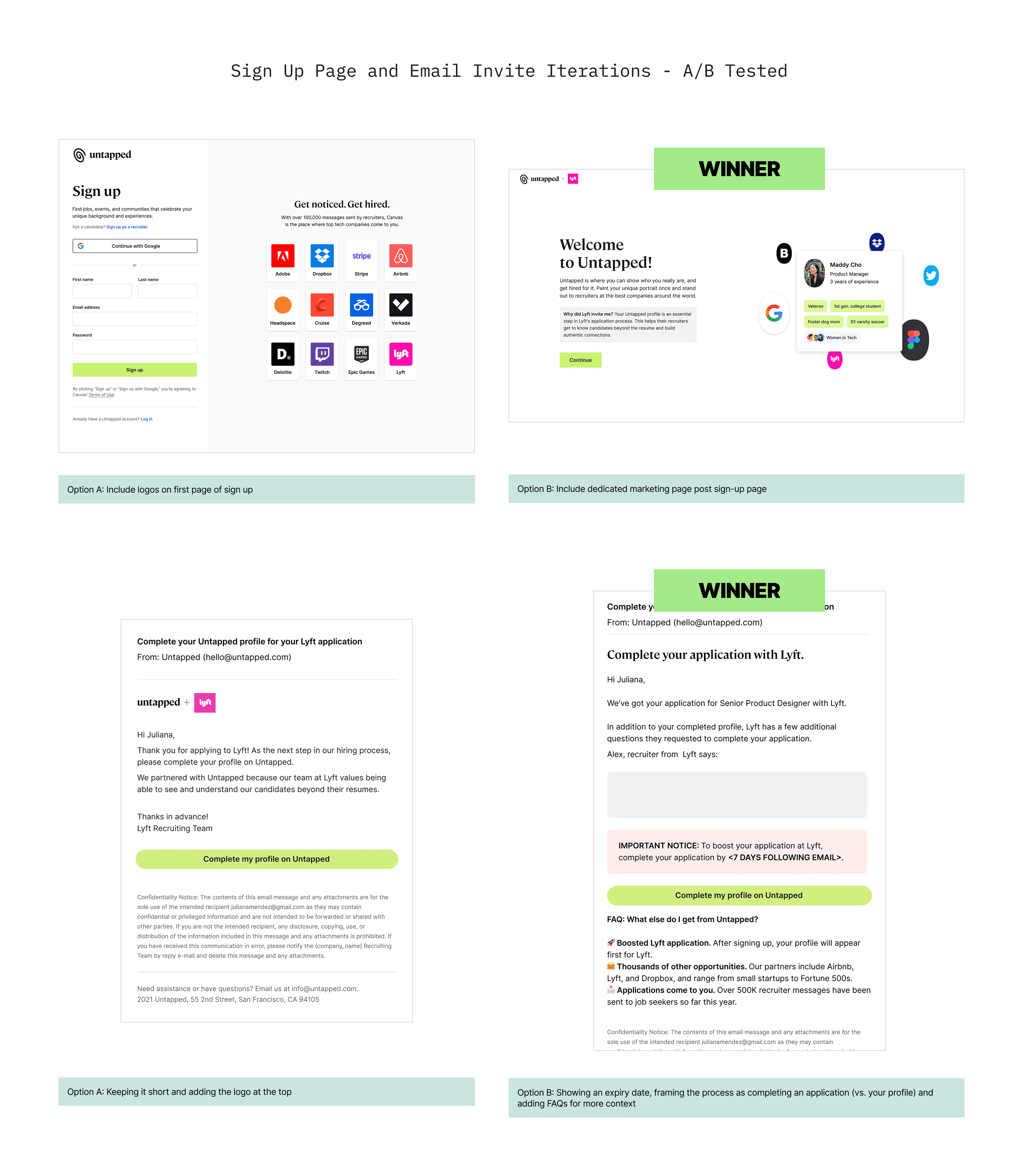 Both sides of the marketplace wanted to increase job application volume. Job seekers wanted speed. Recruiters wanted to measure ROI of Untapped.