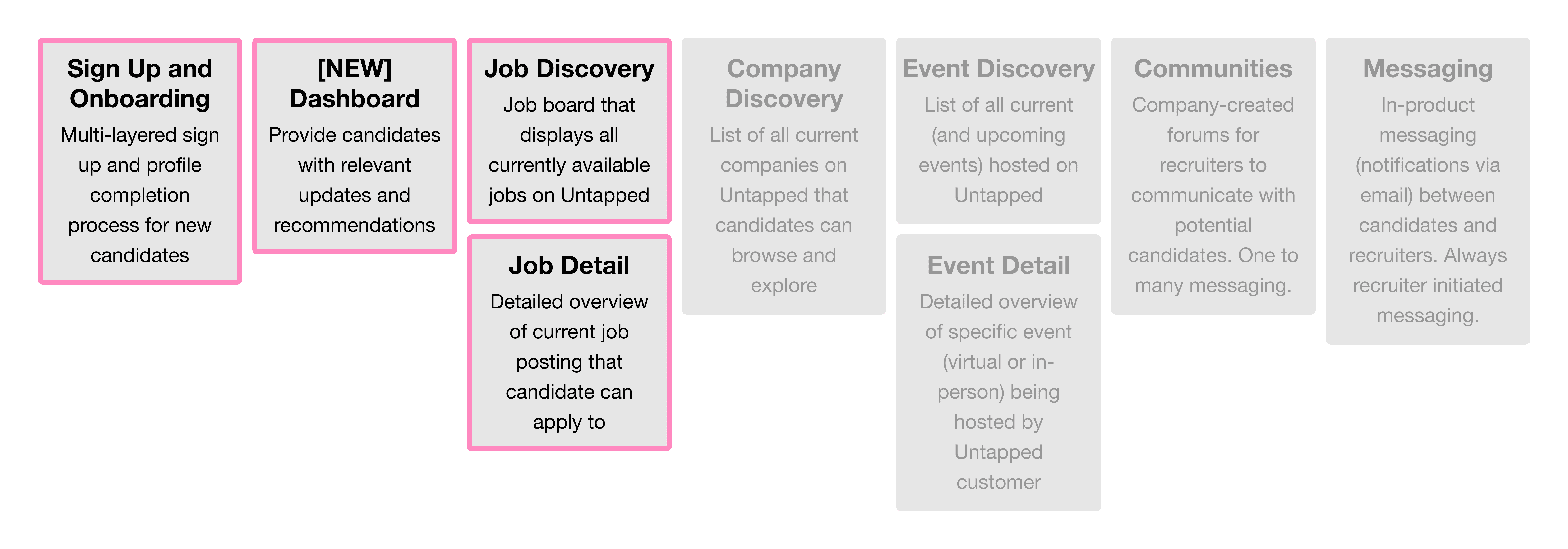 The candidate side of the product had accumulated tech and UX debt after years of neglect. Because Untapped is a marketplace, low candidate engagement hurt recruiters (paying customers) and overall platform health.
