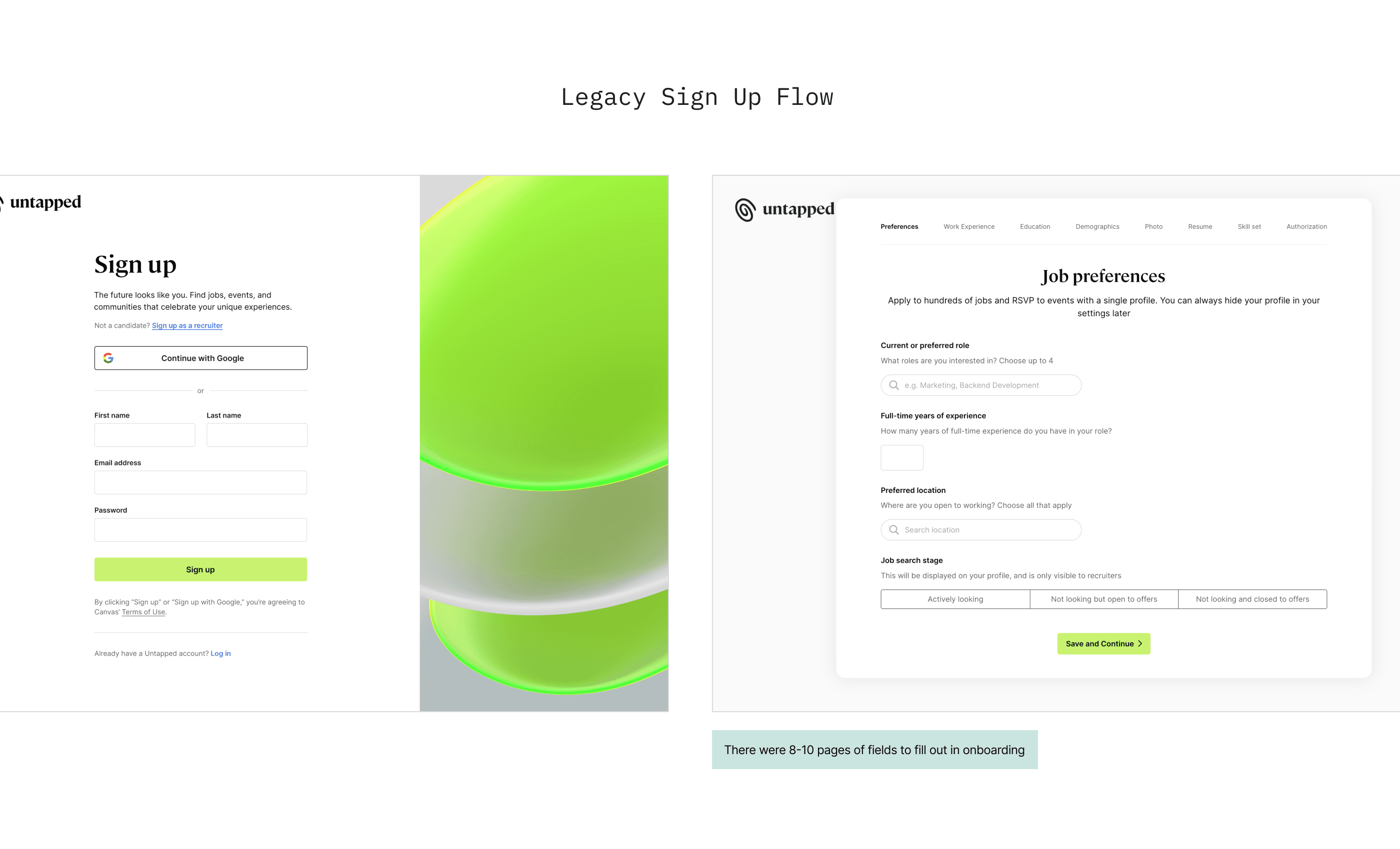 Clearly explain why candidates are joining Untapped and guide them with clear, actionable cues.