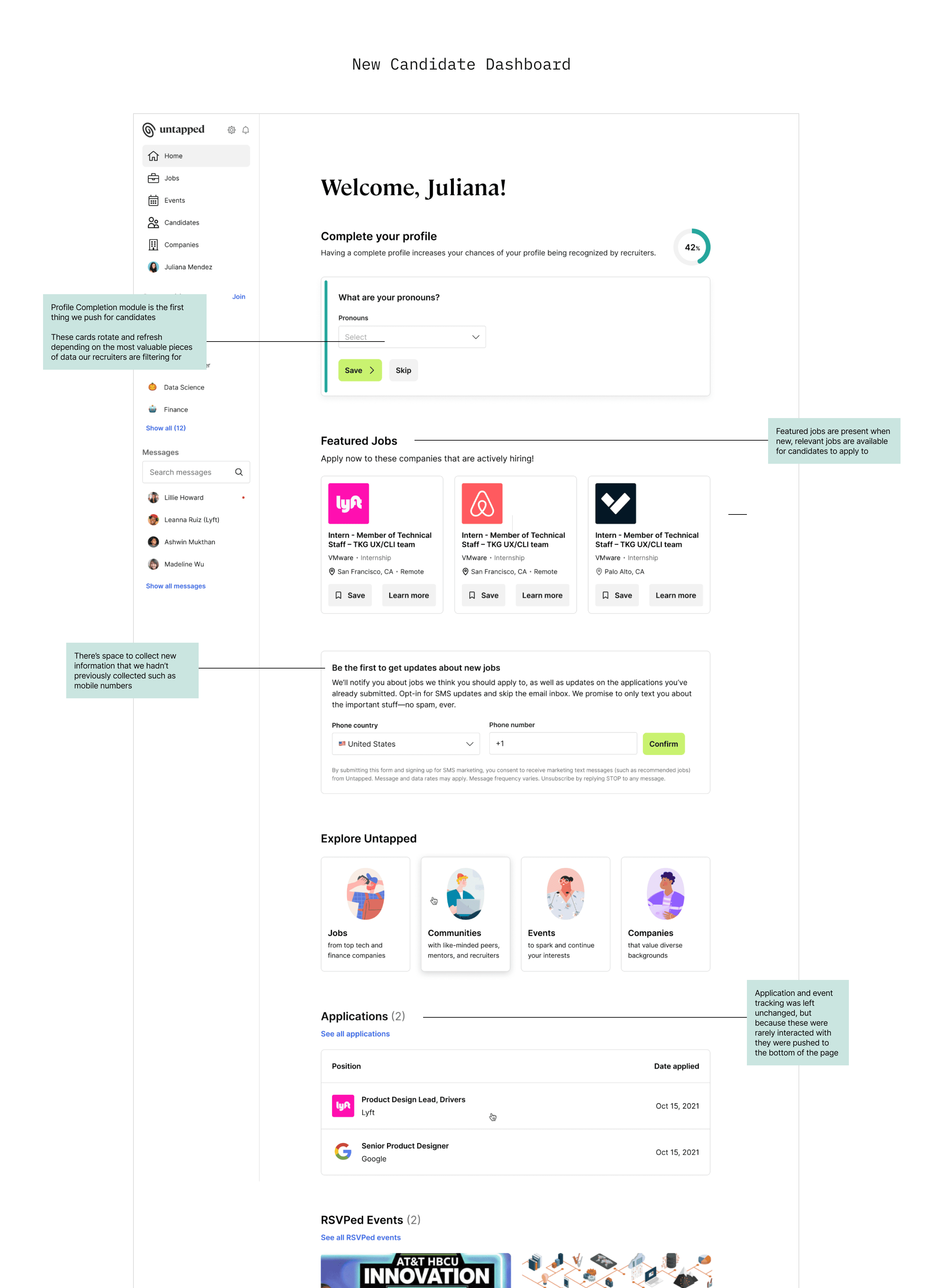 There was a big opportunity to design a dashboard to orient candidates the moment they log in and guide them toward high-impact actions.